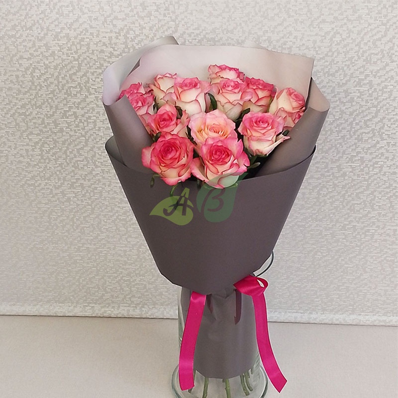 • Роза - 15 штук, цвет - бело-розовый, длина стебля - 60 см;
