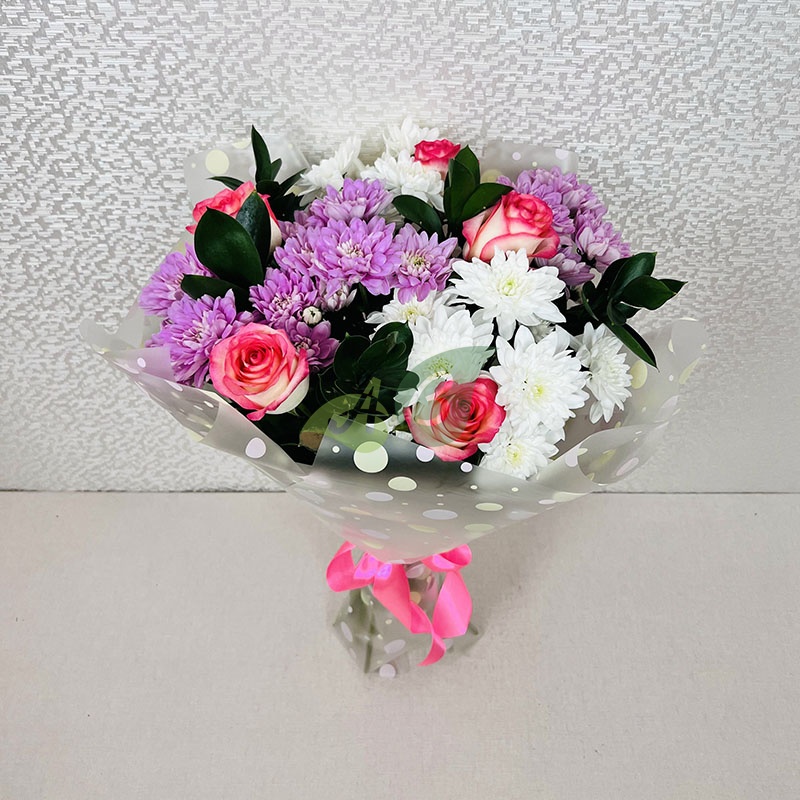 Состав и характеристики букета из роз и хризантем "Летние воспоминания":