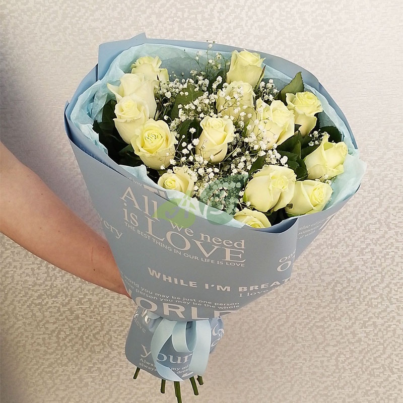 - Роза - 15 штук, цвет - белый;