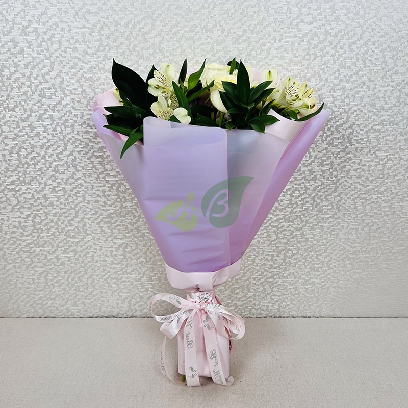 Состав и характеристики букета из альстромрий и роз"Свежесть":